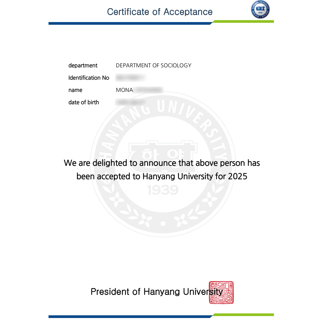 [新入学/合格] ハニャン(漢陽)大学 - 社会学部 1名合格!